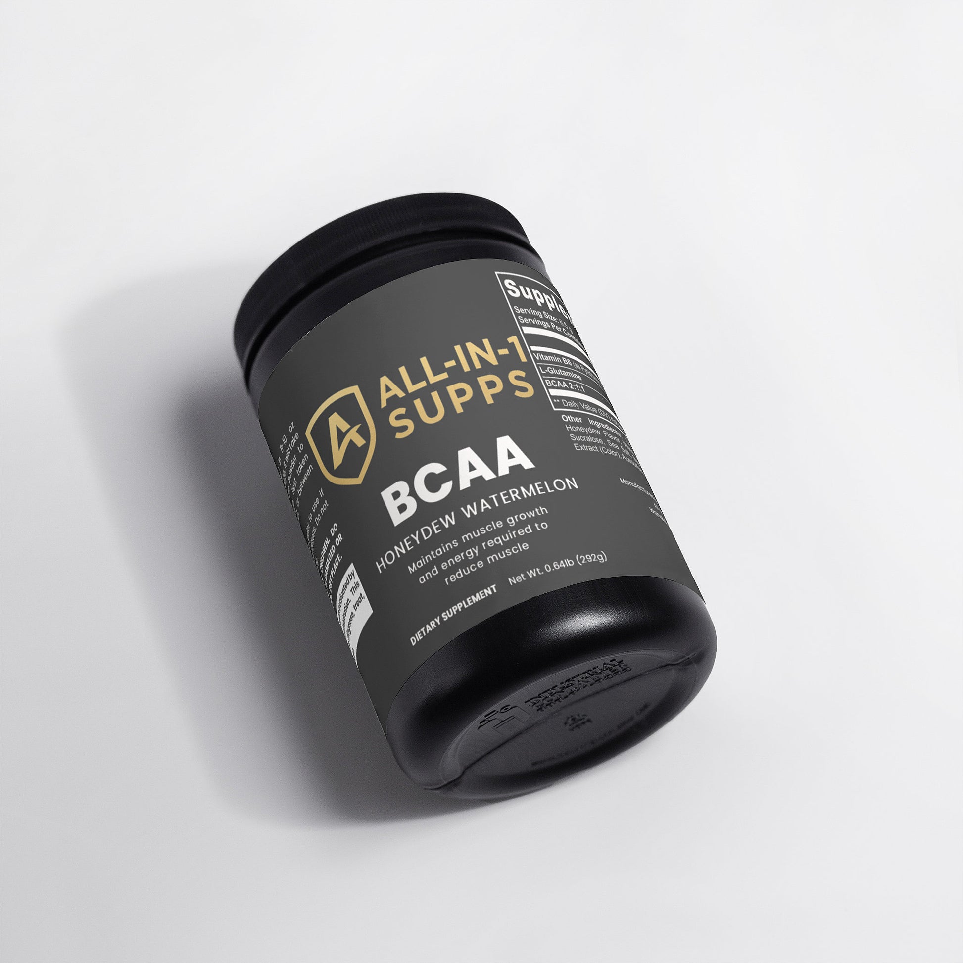 Ingredients: Vitamin B6 (as Pyridoxine Hydrochloride), L-Glutamine, BCAA 2:1:1, Citric Acid, Honeydew Flavor, Watermelon Flavor, Potassium Citrate, Silicon Dioxide, Sucralose, Sea Salt, Beet Powder (Color), Grape Skin Extract (Color), Acesulfame Potassium.