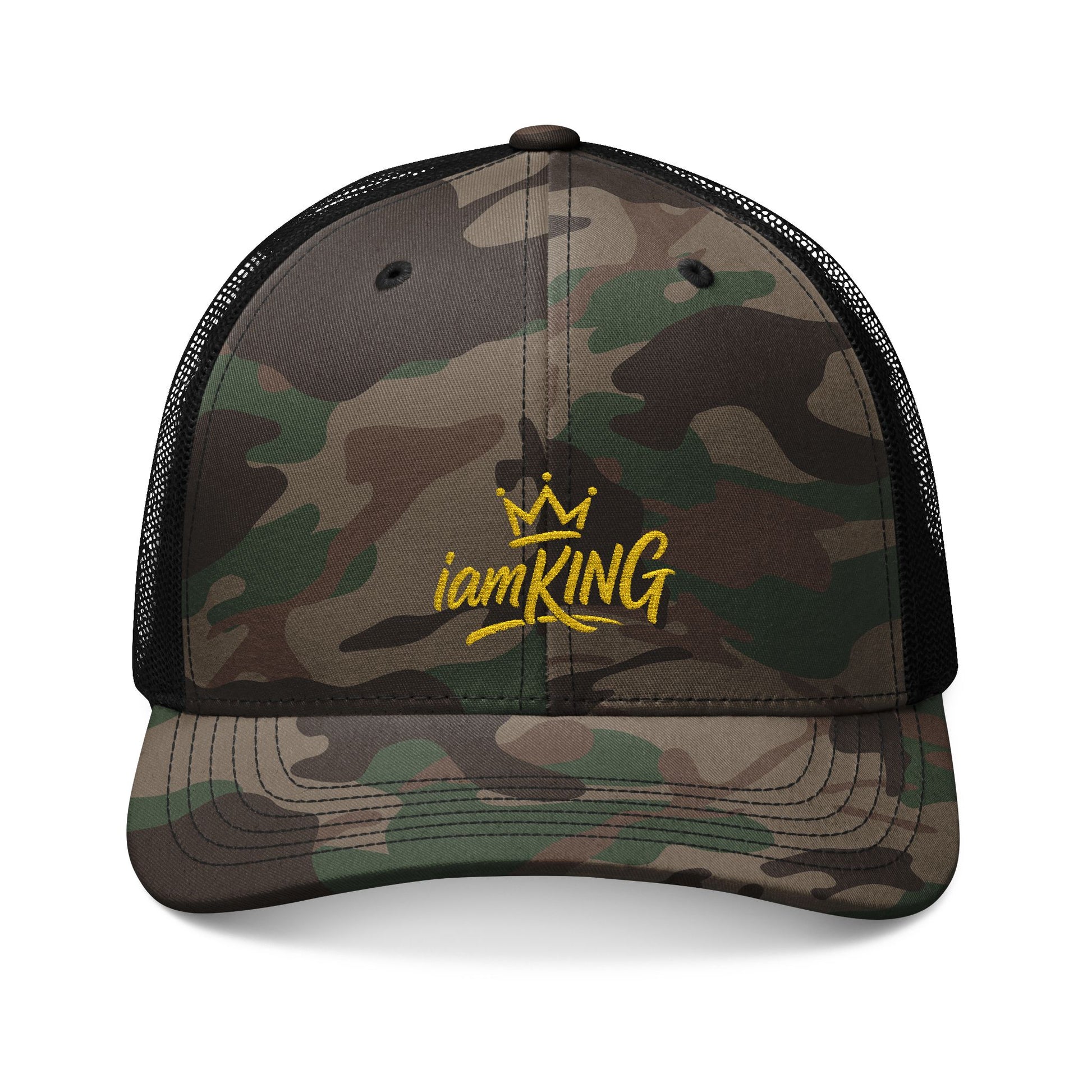 Camo Trucker Hat — "iamKING" Yellow Embroidery