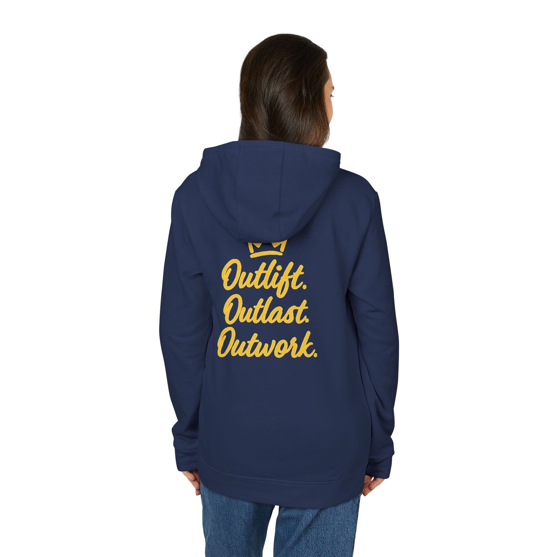 King Graphic Hoodie — "iamKING" Script Logo, Outlift Outlast Outwork Back Design